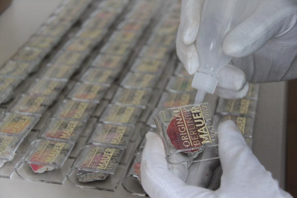 Mảnh tường Bá Linh là một kỷ vật ai cũng muốn có. Dân buôn bán đã thiết lập cả một dịch vụ lớn kiếm lời quanh bức tường. Ngay bây giờ, nếu bạn muốn có kỷ vật này, bạn có thể lên mạng, vào eBay hay Amazon tìm kiếm một cách dễ dàng. Tôi đã vào thử Amazon và thấy rao bán các kỷ vật này với giá từ vài chục tới cả trăm đô tùy theo kích thước lớn nhỏ. Trùm buôn bán các kỷ vật này là ông Volker Pawslowski. Người ta ước tính 90% kỷ vật trên thị trường là từ ông này ra. Năm 1991, ông mua đứt 300 thước tường và đập ra thành từng mảnh nhỏ để bán. Ông thú nhận đã xịt sơn lên nhiều mảnh này để giả những bệt màu của tranh graffiti trên tường. Mảnh tường có dính sơn xanh xanh đỏ đỏ dễ tiêu thụ hơn. Để cầu chứng đây là những mảnh tường thực sự lấy từ bức tường Bá Linh, ông Volker Pawslowski đã dán nhãn “Pawslowski Souvenirs & Postcards” và được đặt trong những hộp đàng hoàng. Ông trùm buôn tường này còn tự hào là có thể nhìn qua là biết thật giả liền. Năm 2014, phóng viên báo ExBerliner đã làm một cuộc khảo sát các tiệm bán đồ kỷ niệm tại Bá Linh và cho kết quả là tất cả hàng của ông Pawslowski là đồ thật trừ một mẫu. Lập tức ông tìm hiểu và phát hiện ra một nhà buôn lẻ lấy hàng của ông bán đã đánh tráo hàng giả vào.