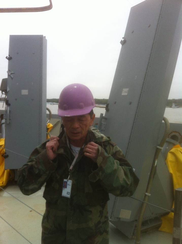 Nhà thơ Quan Dương làm việc trên hộ tống hạm LPD 21.