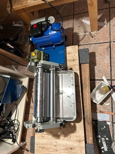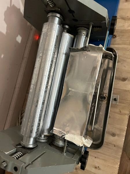Cái máy dán keo anh mua 444 đô nhưng không xài được vì đây là máy chỉ dùng trong kỹ nghệ. Máy phải dùng nhiều keo, khi dán keo tràn ra hai bên, rớt xuống dưới. Đành bỏ xó. Có thể trả lại được nhưng máy rất nặng, cần hai người khiêng và đóng thùng ván. Khi đó thân xác anh đau nhức nhưng đầu óc anh vẫn quay quắt với cái máy. Cuối cùng anh nghĩ ra được cách trị: lấy hai miếng tôn mỏng làm hai vách hai bên. Keo hết tràn lan ra hai bên! Cái đầu kỹ thuật đã giúp ông già thắng 1-0.