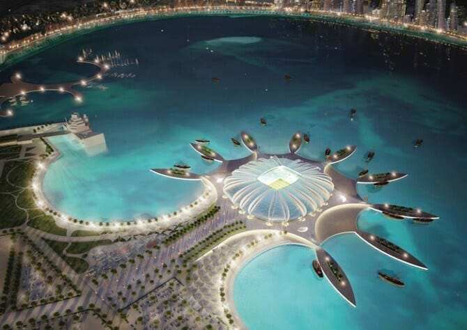 Khi tôi tới Doha thì còn đúng 3 năm nữa nơi đây mới quần hùng tụ hội nhưng cả thành phố đã nhộn nhịp chuẩn bị. Các sân vận động đang được xây cất. Tôi có tới một sân, chỉ mới có cái khung nhưng coi hình thấy đẹp hết biết. Là nơi có trữ lượng dầu hỏa hàng đầu thế giới, Qatar không tiếc tiền để cho thế giới rõ mặt cái xứ sở ẩn khuất này. Họ dự trù chi ra tới 220 tỷ đô Mỹ cho dịp ra mắt thế giới này. Tất cả có 12 sân được xây cất hoặc trùng tu, mỗi sân đều là một công trình kiến trúc ngoạn mục. Sân Al Shamal, Al Gharrafa, Education City, Al Khor, Lusail Iconic, Sports City, Al Rayyan, Qatar University, Umm Slal, Doha Port, Al Wkrah và Khalifa International . Sân nào cũng có sức chứa trên 45 ngàn khán giả. Lớn nhất là sân Lusail Iconic với sức chứa khủng là 86.250 khán giả. Tha hồ sút bóng. Trận chung kết sẽ diễn ra tại đây.