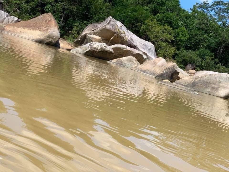 Được lời tôi mở cờ trong bụng. Giờ quanh tôi có đến 5 vệ sĩ cả già lẫn trẻ…Xuống ghe, an toàn. Ghe bắt đầu di chuyển… lòng người phơi phới, ghe êm xuôi theo dòng, tôi mê mẩn khi đi trên sông nước, ngắm nhìn hai bên vách đá với những loại cây, dây leo rất lạ, thỉnh thoảng điểm thêm những nụ hoa vàng, đỏ li ti, lòng lâng lâng, tâm hồn phơi phới… Vậy rồi, tự nhiên, tự nhiên à, Việt đang ngồi trước mũi ghe, sát bên tôi, ý là “cận vệ trưởng” la chói lói, trời ơi nó không la thì ai đâu mà biết chứ? Tôi ngồi sát bên nó, gần mũi thuyền, tôi chạy đi đâu bây giờ, khi nó la bai bãi:
