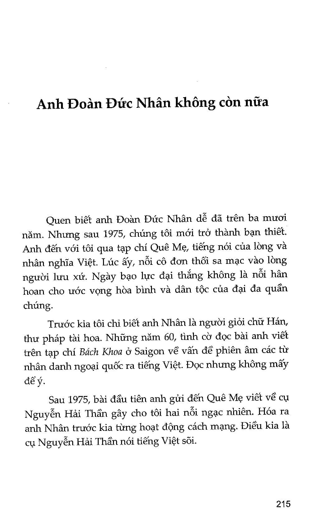 Thi Vũ: Gọi Thầm Giữa Paris (Tạp Ghi) – Anh Đoàn Đức Nhân không còn nữa