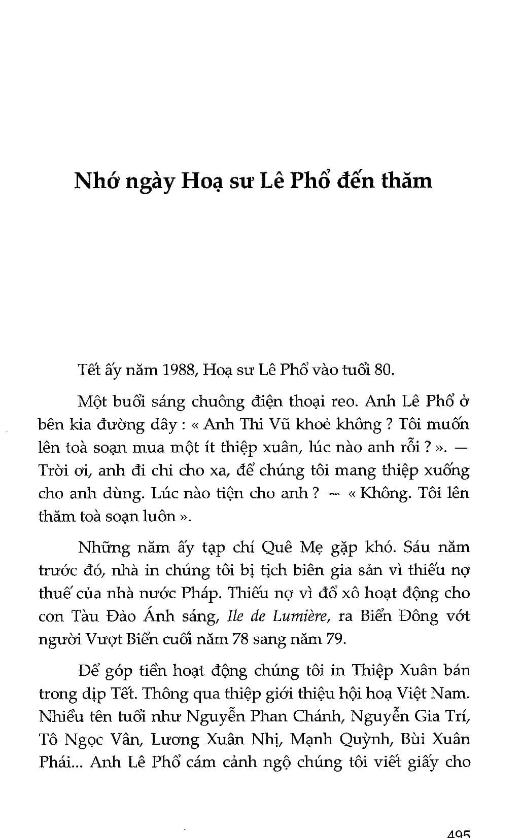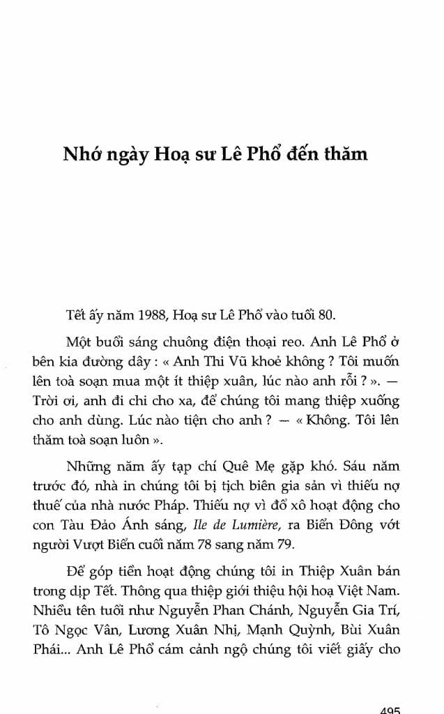 Thi Vũ: Gọi Thầm Giữa Paris (Tạp Ghi) – Nhớ ngày Họa Sư Lê Phổ đến thăm