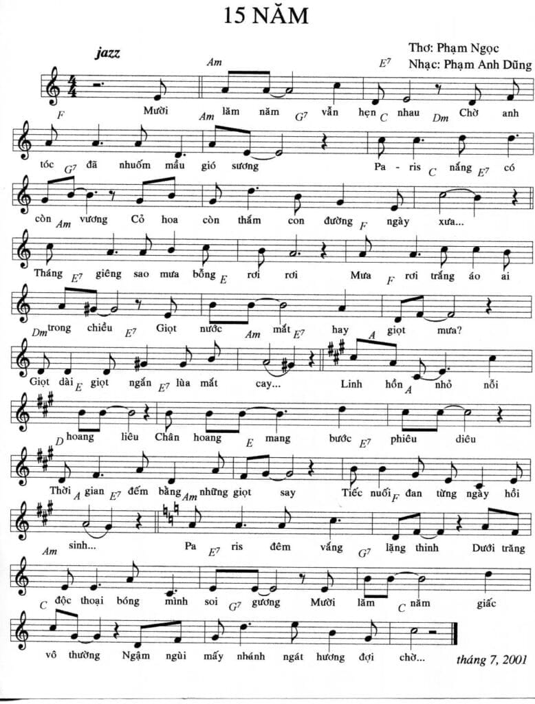15 năm, nhạc Phạm Anh Dũng, thơ Phạm Ngọc,