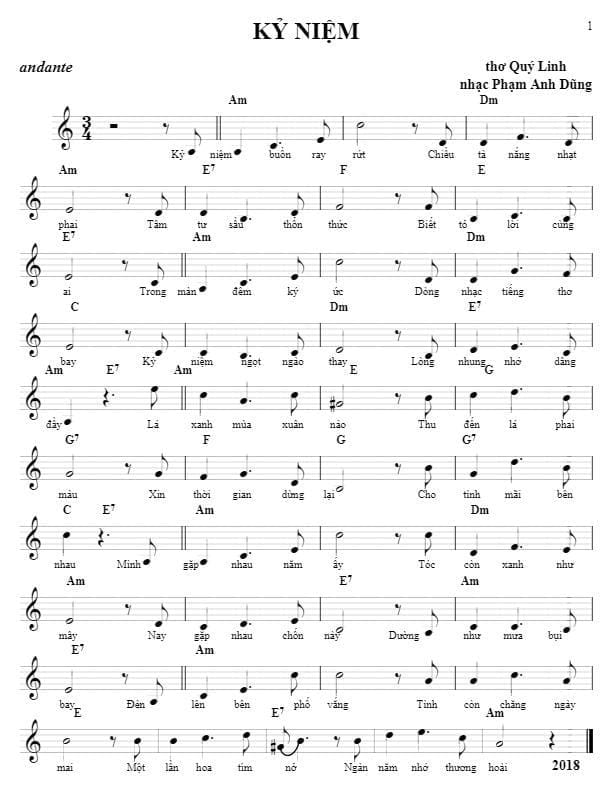 Kỷ Niệm (thơ Quý Linh, nhạc Phạm Anh Dũng)