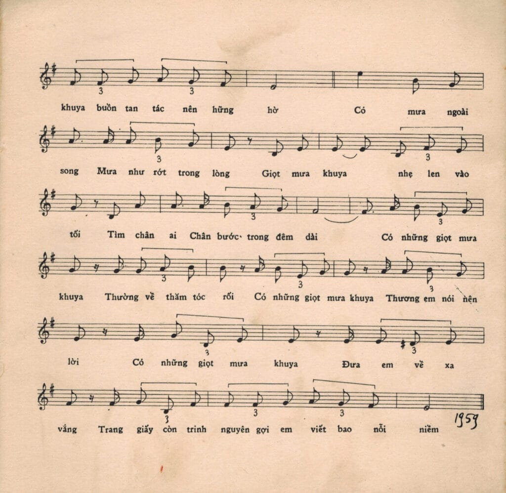 Một trong những nhạc phẩm sớm nhất của Trịnh Công sơn đã thấm đẫm những giọt mưa như vậy: “Mưa lạnh lùng rơi rớt mái hiên nhà nghe não nề. mưa kéo dài lê thê những đêm khuya lạnh ướt mi….Trời sao chưa thôi mưa, để mắt người em ấy, từ nay thôi mờ, nước mắt buồn mi em thơ ngây…” Mưa của Uớt mi đó.