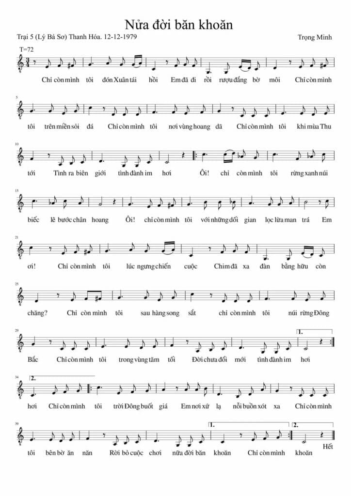 Thật sự đối diện với chính mình, thấm thía nỗi xót xa với bao uất hận, tù khúc Nửa đời băn khoăn được viết lên trong tâm trạng đó.