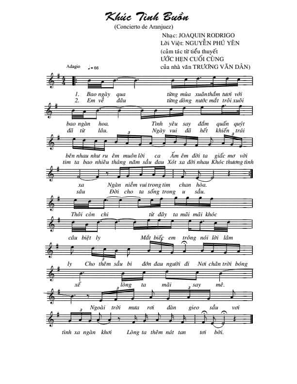 Sau một thời gian gọi qua gọi lại, tôi gửi hết các thông tin về bản hòa tấu và dịch lời các bài hát, anh Phú Yên đã viết nên ca khúc “Khúc tình buồn” với lời Việt dựa theo dòng nhạc Concierto de Aranjuez của Joaquín Rodrigo.