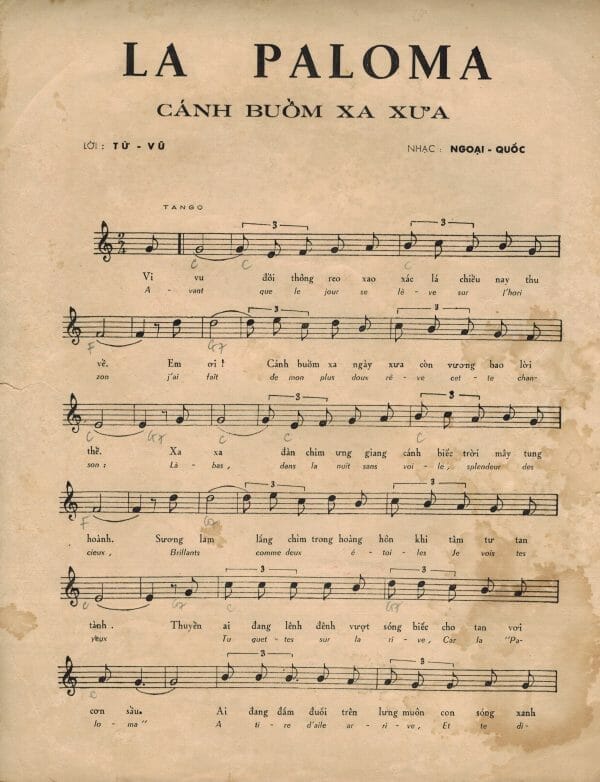 Ở Việt Nam, La Paloma cũng rất được ưa chuộng với tên gọi Cánh buồm xa xưa, cho đến nay vẫn còn chưa ngã ngũ do Phạm Duy hay Từ Vũ đặt lại lời Việt. Dù không sát với nguyên tác nhưng Cánh buồm xa xưa cũng là những tiếng lòng đay đả về tình yêu và nỗi nhớ quê hương vời vợi. Những người hát Cánh buồm xa xưa được ưa thích và tìm nghe nhiều nhất có lẽ là ba giọng ca vàng: Lệ Thu, Khánh Ly và Duy Quang.