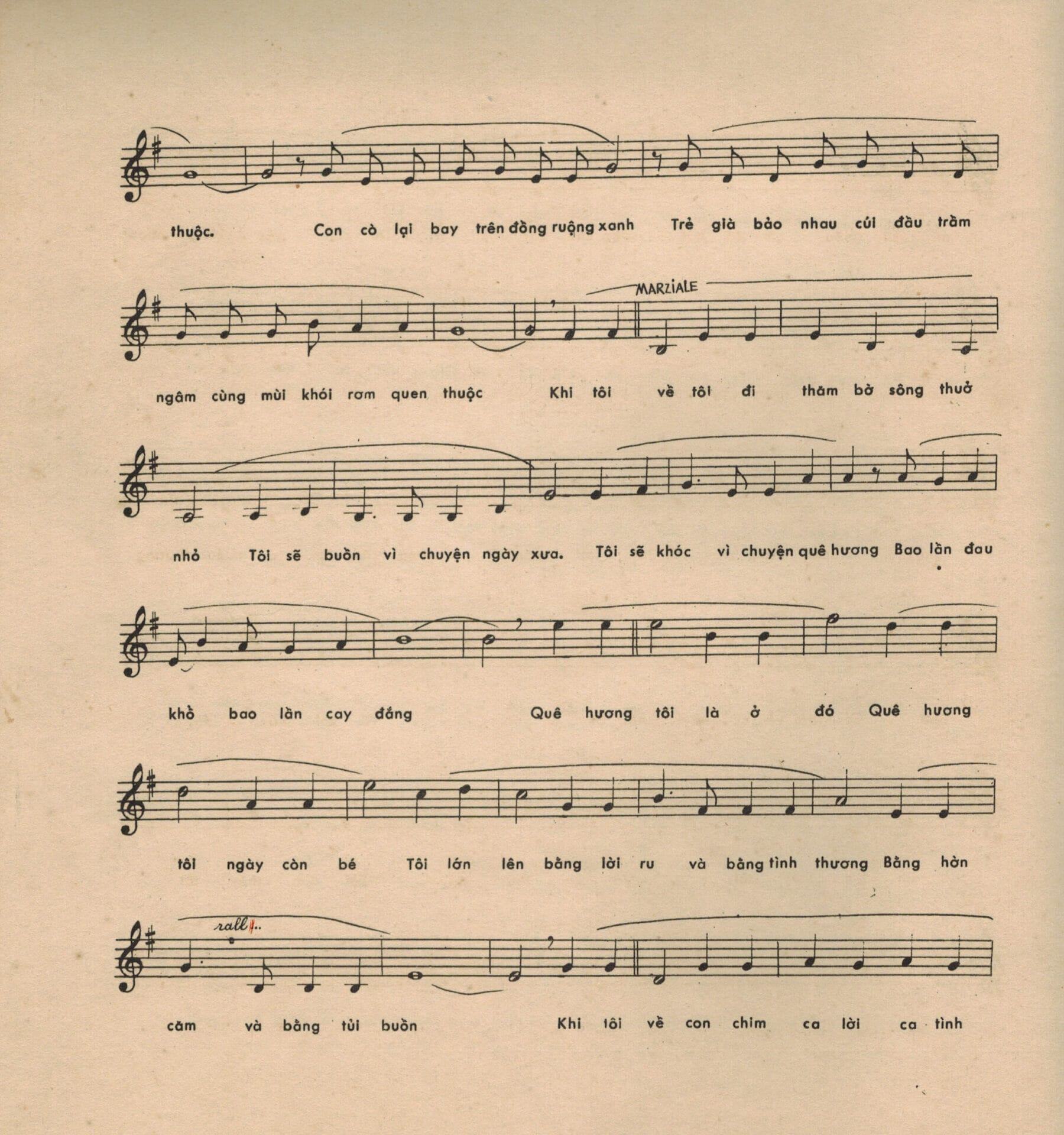 Quê hương tôi ở đó. Quê hương tôi khi còn tuổi nhỏ, khi tôi lớn lên bằng tiếng ru hời.