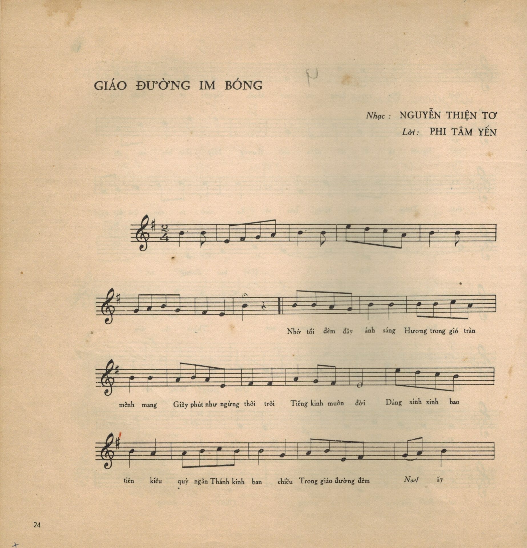 Ca khúc “Giáo đường im bóng” của nhạc sĩ Nguyễn Thiện Tơ vẫn được hát lên vào mùa Giáng sinh, như tâm sự ấm áp tình nhân gửi cho tình nhân. Thế nhưng, ca khúc này không chỉ tồn tại bằng giá trị nghệ thuật, còn có ý nghĩa chứng minh vẻ đẹp của mối tình xuyên thế kỷ giữa nhạc sĩ Nguyễn Thiện Thơ và mỹ nhân đất Nam Định.
