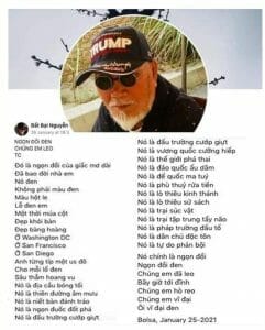 Vài dòng về bối cảnh: Có một bài thơ tiếng Anh của một nhà thơ nữ da đen trẻ tuổi, đọc trong buổi lễ nhậm chức của Joe Biden. Và sau đó là một bài-thơ tiếng Việt của một họa sĩ nam lớn tuổi gốc Việt (lâu lâu cũng làm thơ) hiện đang sống ở Mỹ, để nói về bài thơ đầu tiên.