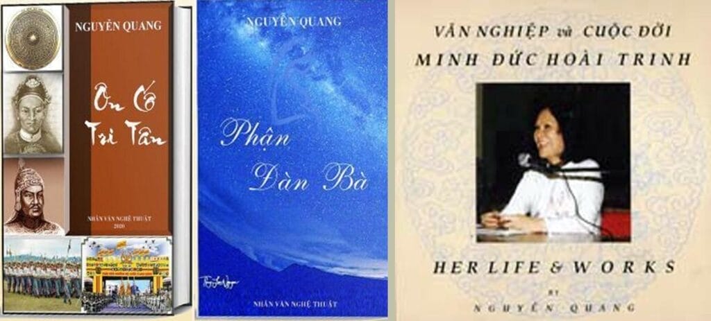 (Trích): “Ban Tổ Chức Nhân Văn Nghệ Thuật và Tiếng Thời Gian tổ chức buổi RMS hai tác phẩm Phận Đàn Bà và Ôn Cố Tri Tân của nhà văn Nguyễn Quang tại hội trường Thư Viện Việt Nam, thành phố Garden Grove. Nhà văn Nguyễn Quang là phu quân nữ sĩ Minh Đức Hoài Trinh (1930-2017). Tuy bước sang tuổi 90 nhưng nhà văn Nguyễn Quang vẫn khỏe mạnh và hoàn thành hai tác phẩm thứ 8 & 9: Phận Đàn Bà & Ôn Cố Tri Tân.