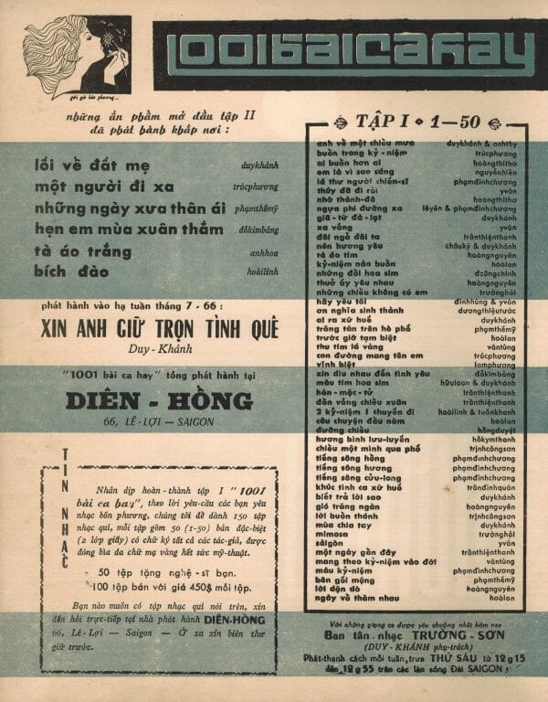 Trong một chuyến về thăm quê nhà gần đây nhất, tôi lại được người Sài Gòn cũ gởi gắm hồn của những người trẻ năm xưa còn sống ở quê nhà. Trẻ năm xưa nhưng nay đã là những ông bà lão tóc hai màu. Dầu vậy, hồn Sài Gòn cũ vẫn như ngày nào trước khi có cuộc đổi đời. Nó không mất, không bị “cải tạo”. Nó vẫn sừng sững tồn tại trong những ấn phẩm văn hóa trước 1975 sống sót qua cuộc phần thư tàn khốc. Nó sống sót được là nhờ ở lòng dân. Nhờ vậy, hôm nay đây tôi may mắn “sở hữu” hồn Sài Gòn ấy qua kho tài sản vô giá: hàng mấy trăm bài nhạc cũ in trước 1975, với thủ bút, chữ ký của các nhạc sĩ tác giả, với cả những hàng chữ viết tay của người chủ sở hữu năm xưa ghi lại kỷ niệm của riêng mình.